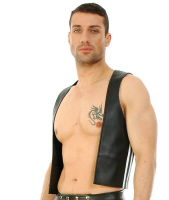 Genuine Leather Open Vest White Stripes