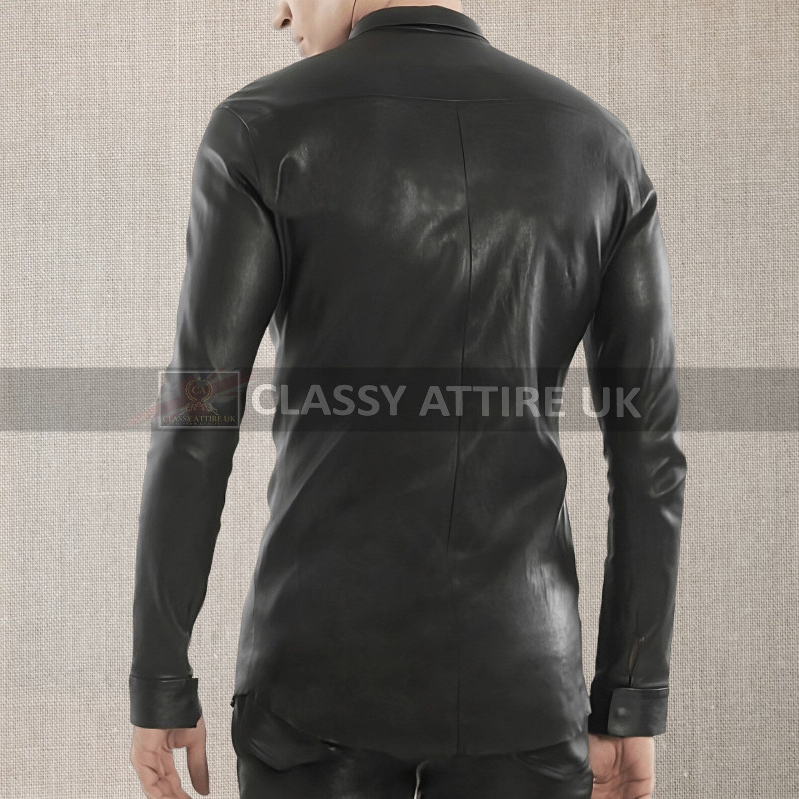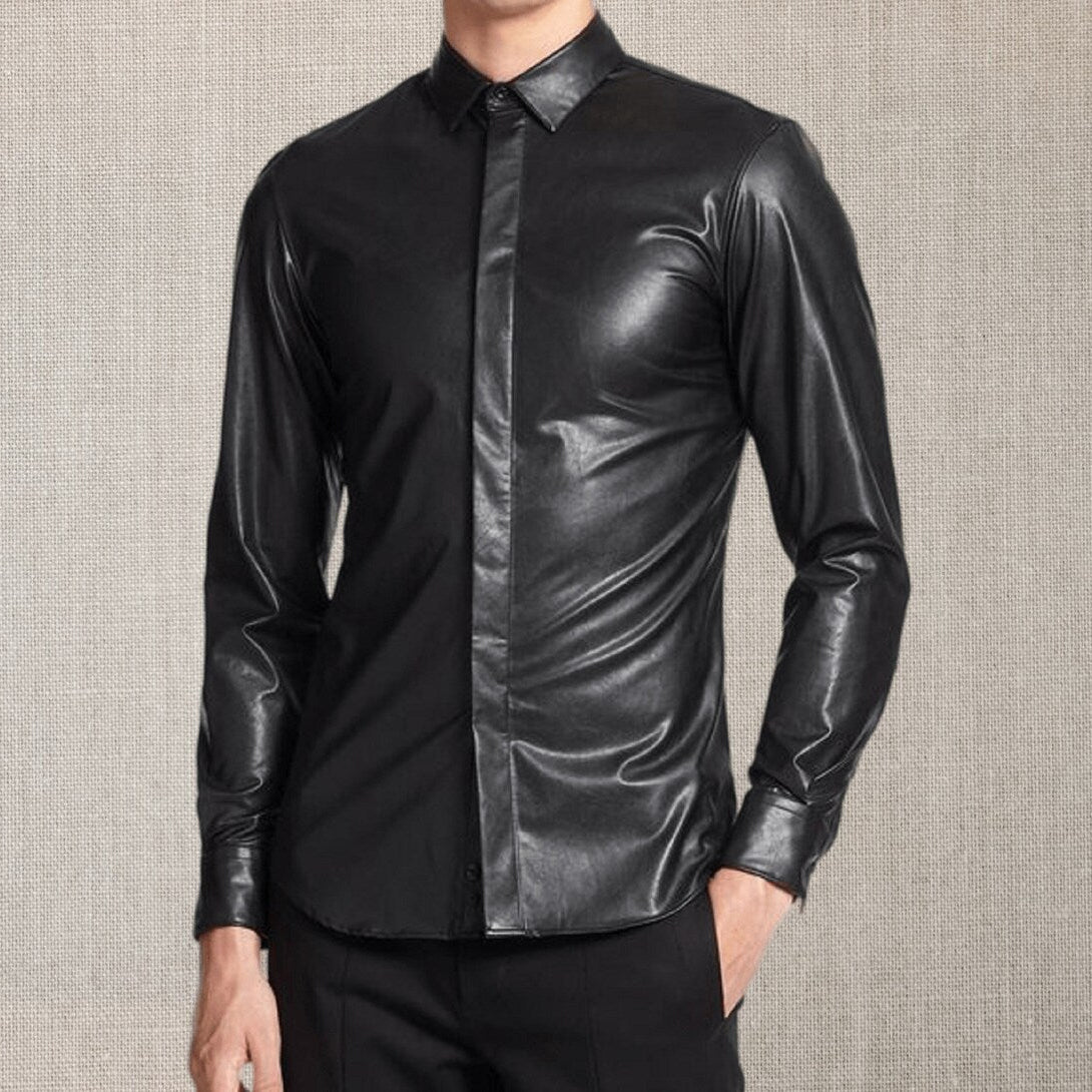 Crafted from high-quality genuine leather, this long sleeve shirt offers a sleek and stylish look. Designed with a slim fit and a concealed snap button fastening, it provides a flattering silhouette. Plus, with a fully lined interior, it offers both comfort and durability. Perfect for any occasion.
