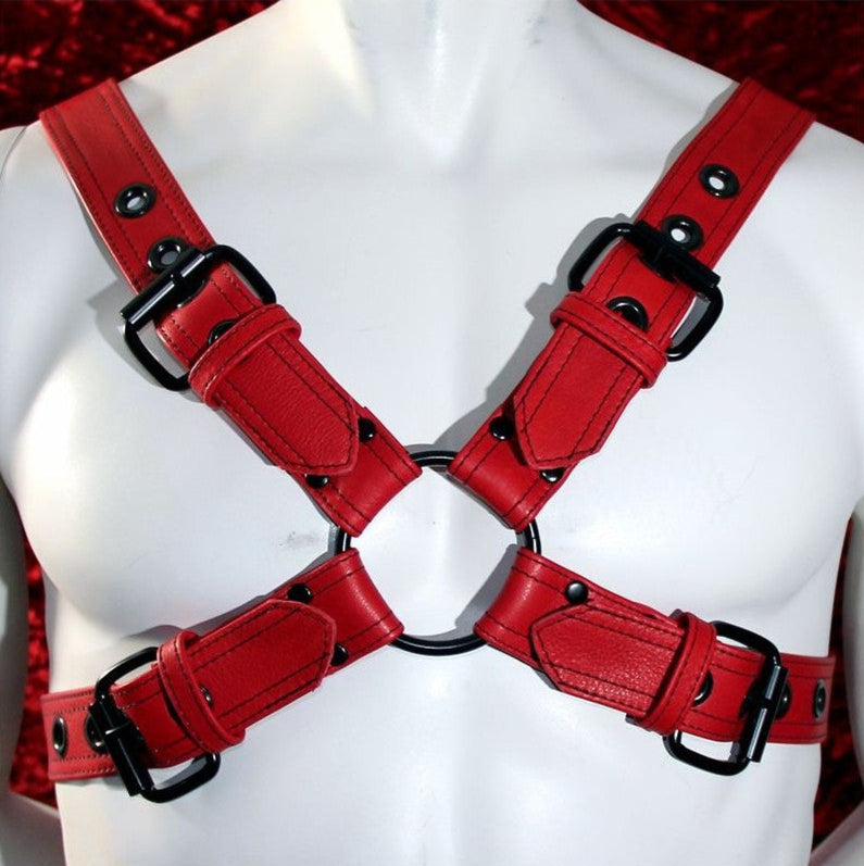 Leather Chest Harness Red