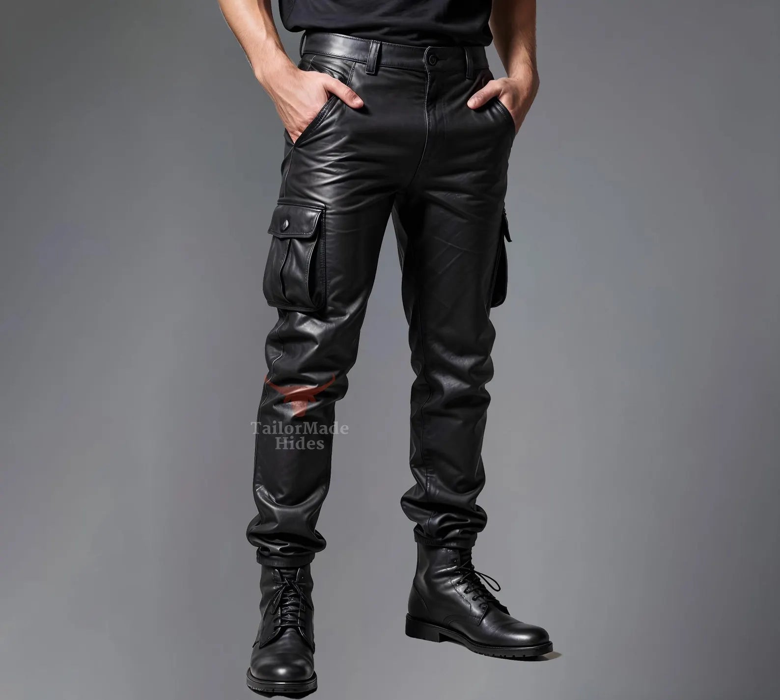 Expertly crafted in genuine leather, these cargo pants offer both style and comfort. Fully lined for a luxurious feel, these pants are perfect for any occasion. Elevate your wardrobe with these high-quality leather pants.