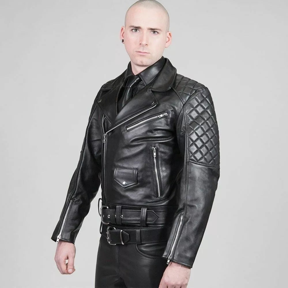 This genuine leather quilted jacket features quilted shoulder panels, a lapel collar, and a waist belt. The polyester lining adds extra comfort and durability. Stay stylish and warm with this high-quality, expertly crafted jacket.