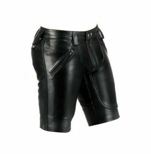 Upgrade your wardrobe with our Genuine Leather Rear Zip Shorts. Made from 100% genuine leather, these shorts offer an exclusive and luxurious feel. The rear zip adds an interesting detail while ensuring a secure fit. The slim fit and full lining provide both style and comfort. Elevate your outfit with these high-quality shorts.
