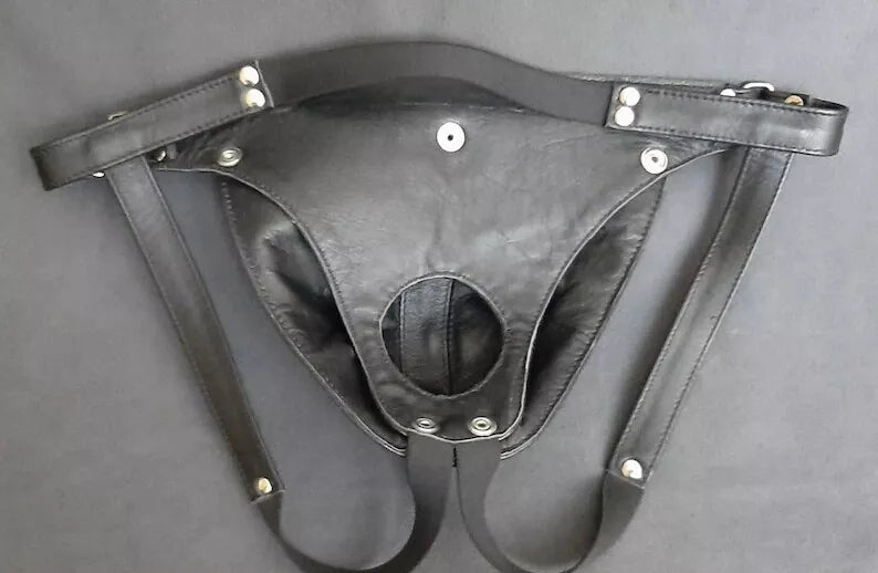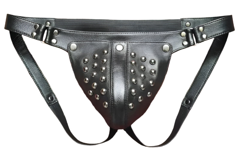 Expertly crafted from genuine leather, this studded jockstrap offers both comfort and style. Its elastic straps provide a secure fit, while the metal studs add a touch of edginess. Perfect for those looking to make a bold statement in the bedroom.