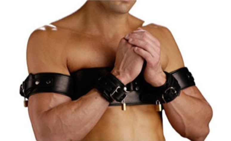 This lockable leather arm and wrist binder offers secure restraint for adventurous play. Made of genuine leather, this binder provides both comfort and durability. Perfect for BDSM enthusiasts or those looking to spice up their intimate experiences.
