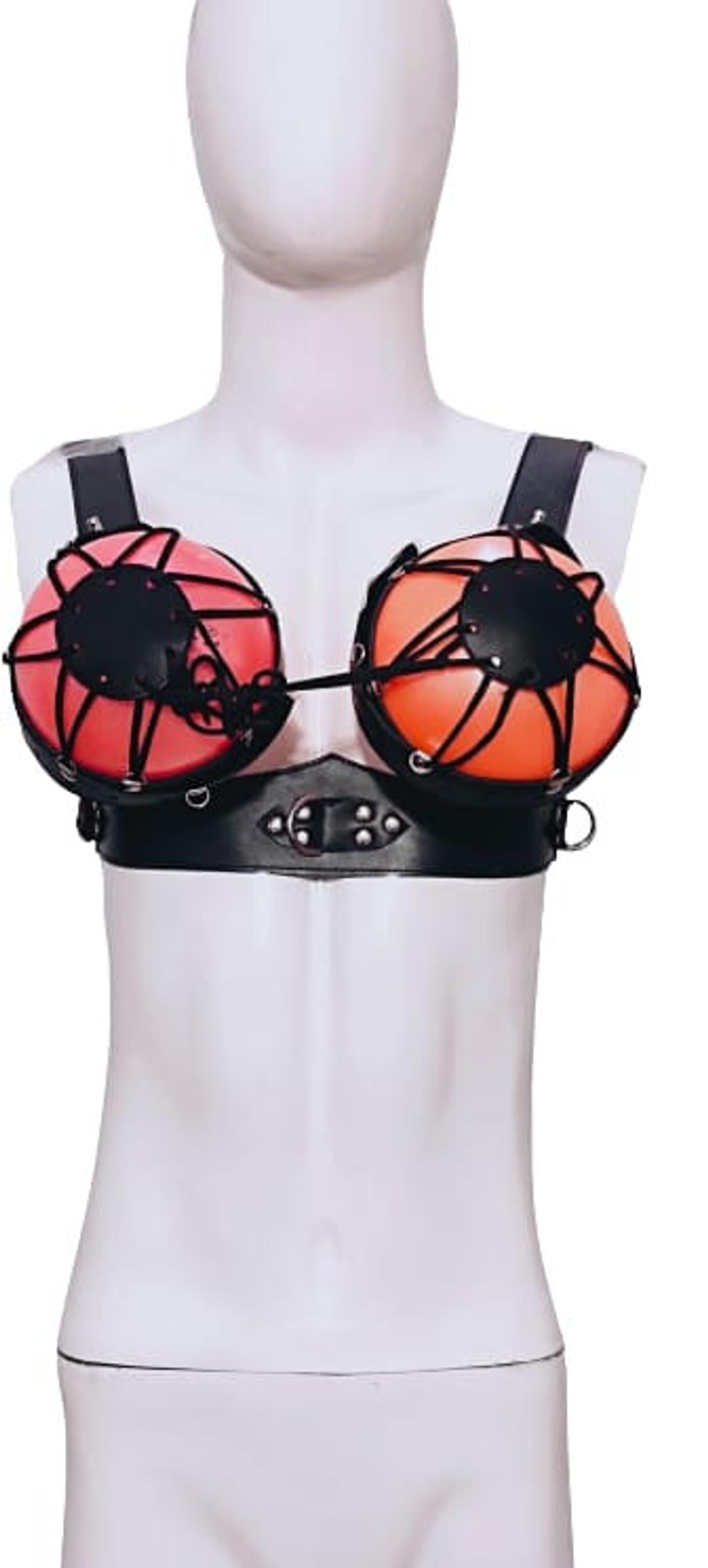 Leather Fully lockable bondage bra